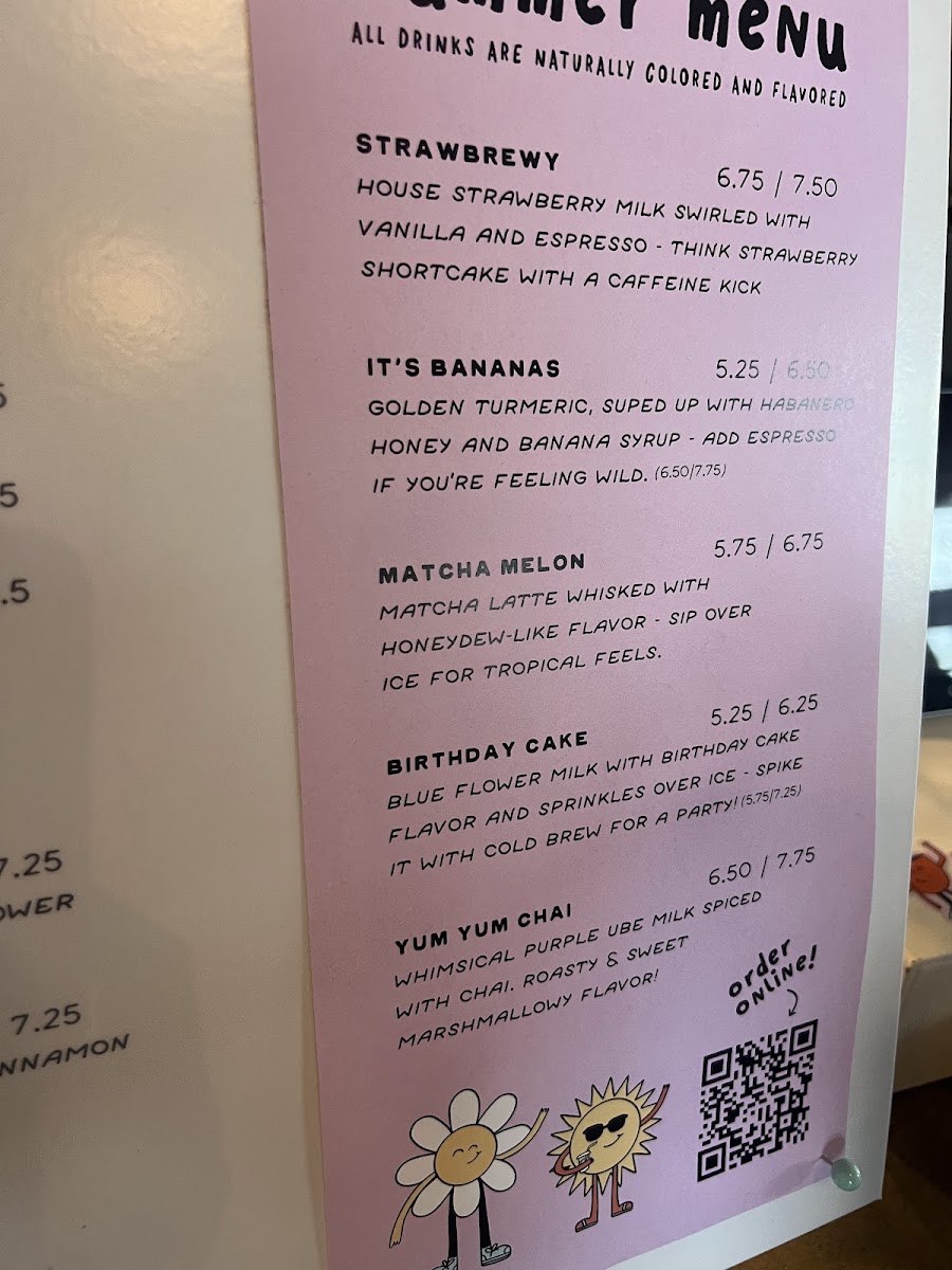 Additionally, the menu features exciting options like the Strawbrewy, It's Bananas, and the creamy Matcha Melon, perfect for those looking for a refreshing twist. The Birthday Cake and Yum Yum Chai continue the theme of sweet indulgence.