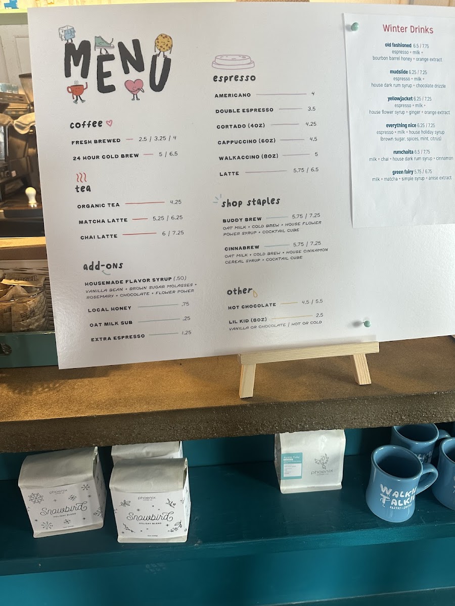 For a sweet treat, Walkie Talkie Espresso & Coffee offers tempting Birthday Cake, Chocolate Cake, and the refreshing Mint Chocolate Chip Ice Cream. Their seasonal offerings, like the Black Raspberry Latte, Razz-Brewy, and Candy CrushChristmas Ale-Icano, bring exciting, limited-time flavors that are perfect for seasonal enjoyment.