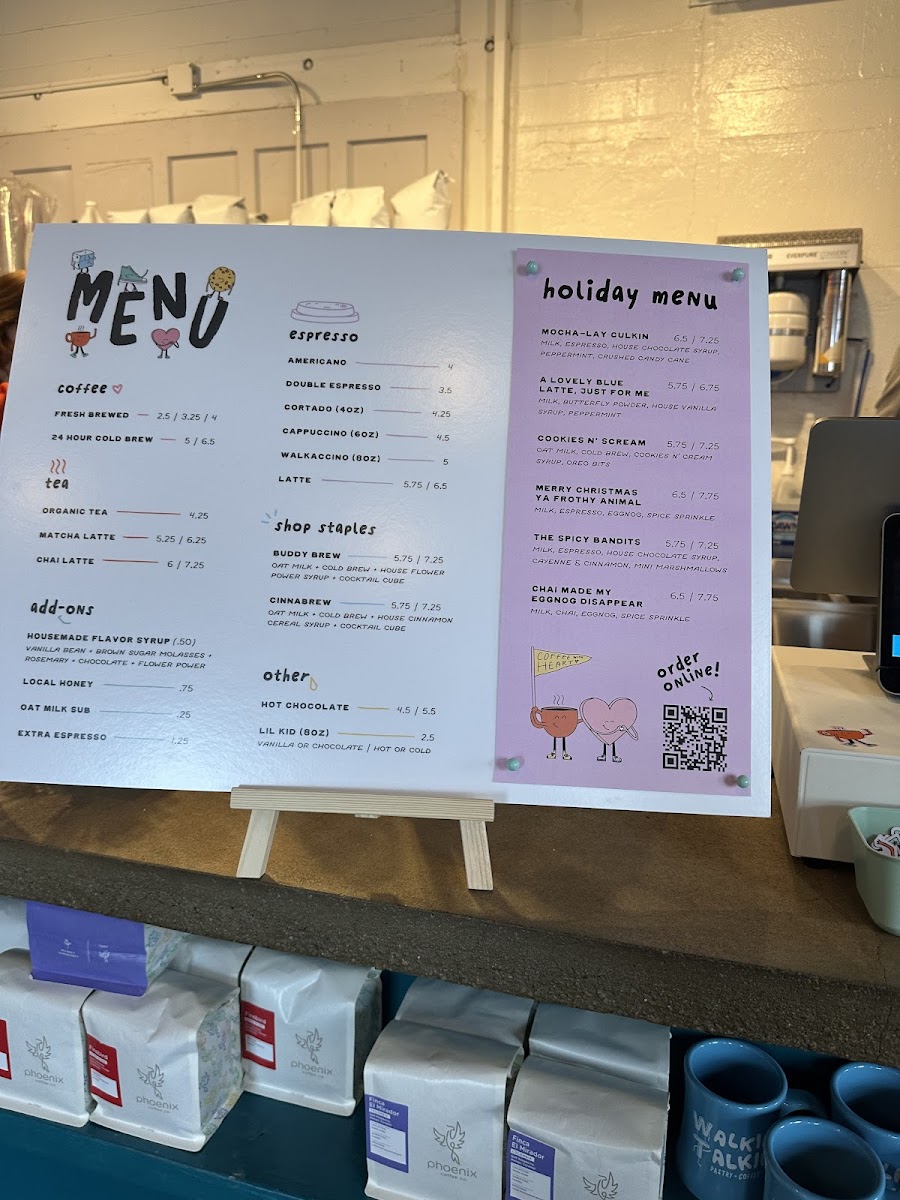 Walkie Talkie Espresso & Coffee, located at 504 15th St NW, Canton, OH 44703, offers a vibrant and diverse menu that is perfect for any coffee enthusiast or someone looking to indulge in a sweet treat. The espresso section of the menu includes favorites like Americano, Double Espresso, and the rich CortadoCappuccino, each providing a variety of flavors that cater to different tastes. The Walkaccino, with its unique twist, is an intriguing option for those seeking something new. For tea lovers, the shop serves a selection of Organic Tea, the creamy Matcha Latte, and the spiced Chai Latte.